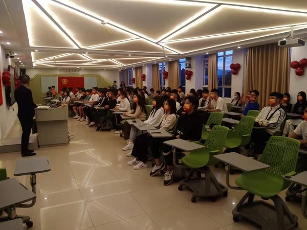 晚上7点,党史宣传活动于致知楼214正式开始,到场的同学都正襟危坐,认真学习党史知识。