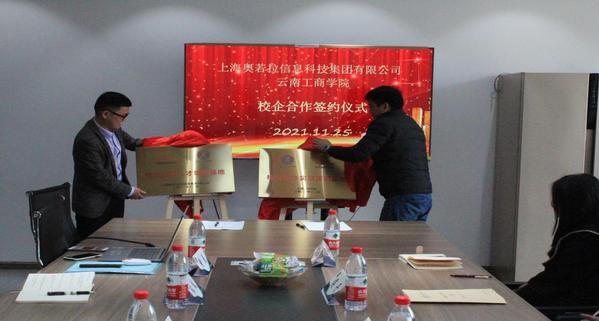 为加强校企合作,进一步推进产教融合,2021年11月25日上午,经济与管理学院与上海奥若拉信息科技集团有限公司在明远楼会议室成功举行校企合作签约仪式。上海奥若拉信息科技集团有限公司CEO晏海水先生、高级助理武艳芬女士、股东代表侯丹女士、助理皮荔臻女士、经济与管理学院院长张学高、学生科科长郑斌、学科带头人及就业专员出席本次仪式。