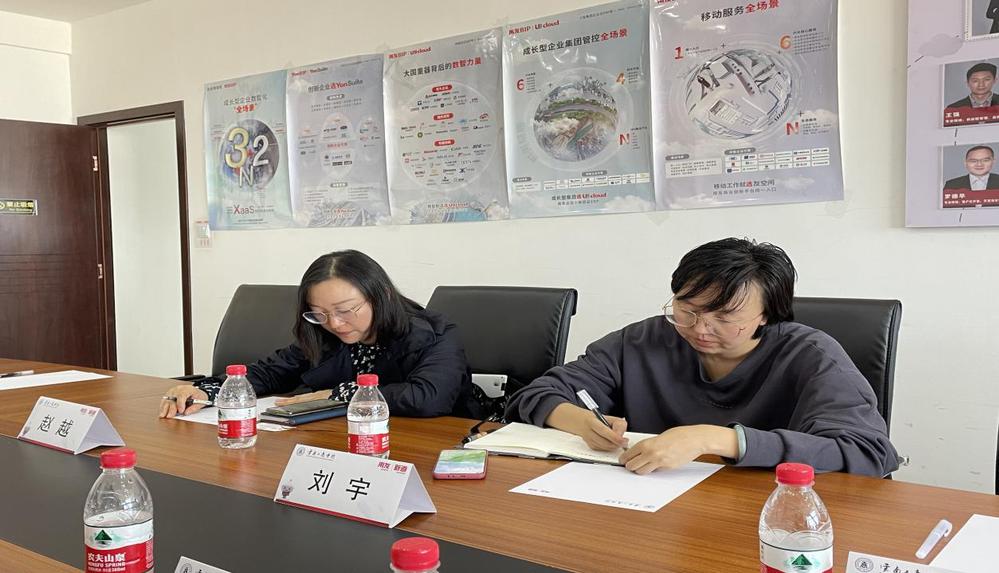 为不断加强校企合作,持续深化教育教学和服务水平,5月25日,我校与新道科技股份有限公司在其会议室举办“校企携手,共创双赢”2022年校企合作交流座谈会。管理系主任赵越,工商管理专业负责人刘宇,经济学专业负责人汪金锋,人力资源管理专业骨干教师杨雨舟,市场营销专业骨干教师王来,电子商务专业骨干教师孟慧,物流管理专业教师王卫东、新道科技数字人力总监陈国峰、新道科技股份有限公司云南省区市场部经理袁幼娥出席座谈会。座谈会由新道科技股份有限公司教学服务经理粟林主持。
