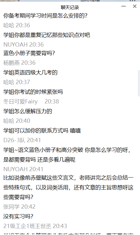 在本次专升本经验分享会中,张文欢同学与各位参会的同学进行了热烈的学习经验分享与交流互动。张文欢同学就学习目标的树立、学习方法、应试技巧、院校及专业的报考选择等大家所关心的问题一一耐心给予了个人经验的分享并解答了同学们的疑惑。会后,同学们都从中受益匪浅,不仅增强了对今后学习的兴趣,而且更加坚定了未来的学习目标。