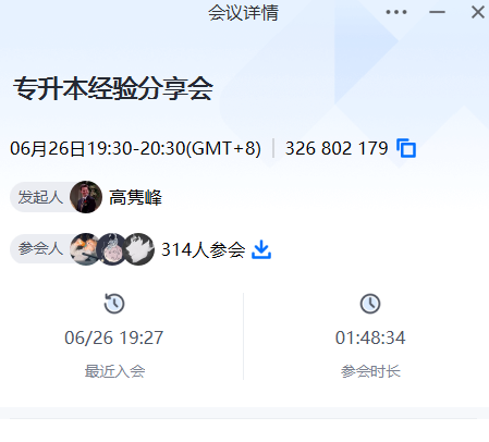 青春是昂扬向上的,青春是活力四射的,为了增强我校学生的学习兴趣,树立坚定的目标。2022年6月26日19时30分,由云南工商学院经济与管理学院举办的2022年专升本经验分享会隆重召开并进行了线上的现场直播。来自我校及外校的各专业的300多名同学都通过线上的方式参加了本次的专升本经验分享会。