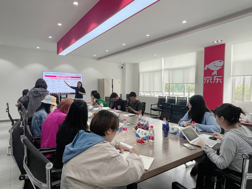 在会议开始前,经济与管理学院营销系系主任黄辰老师,带领百胜中国云贵市场管理团队参观并介绍了云南工商学院数字产业电商直播孵化基地、京东产教融合学院,双方在参观过程中探讨更多样的校企合作模式。