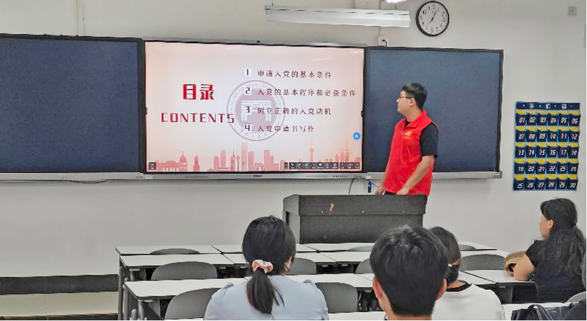 班会特邀优秀学生党员分享成长经历,如参与志愿服务、专业竞赛等事迹,以“身边榜样”激励新生将个人理想融入国家发展。高年级学生党员还进班交流入党心得,解答新生关于学业、实践与党性锤炼的困惑,拉近党组织与青年的距离。