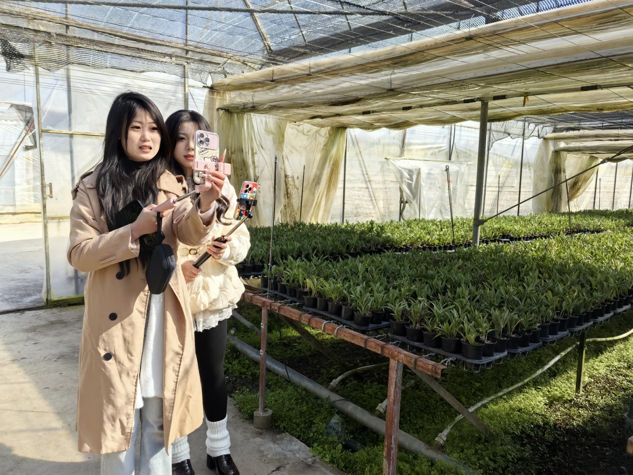 “家人们,这款大花蕙兰可不一般,得足足培育 3 年才能开花,花瓣饱满、花色艳丽,年节送礼超有分量;还有这盆澳洲香水石斛,天然香气清雅持久,日常养护省心,开花后颜值超高,数量稀缺、品相上乘,现在下单新鲜直达!” 在基地现场,学生主播们迅速进入状态,通过镜头逐一展示高端花卉的生长环境、品种特性,结合大花蕙兰的培育周期优势与澳洲香水石斛的香气、养护特点展开讲解,专业的介绍与鲜活的场景呈现吸引了大量粉丝关注,互动留言持续刷屏。据了解,双方计划于 12 月 3 日正式将鲜花引入学校共享直播间,实现直播带货常态化运营。目前,学院共享直播间已取得单周期 700-800 单的销售成绩,未来将进一步扩大选品范围,让更多 “云花” 特色产品通过直播走向全国。