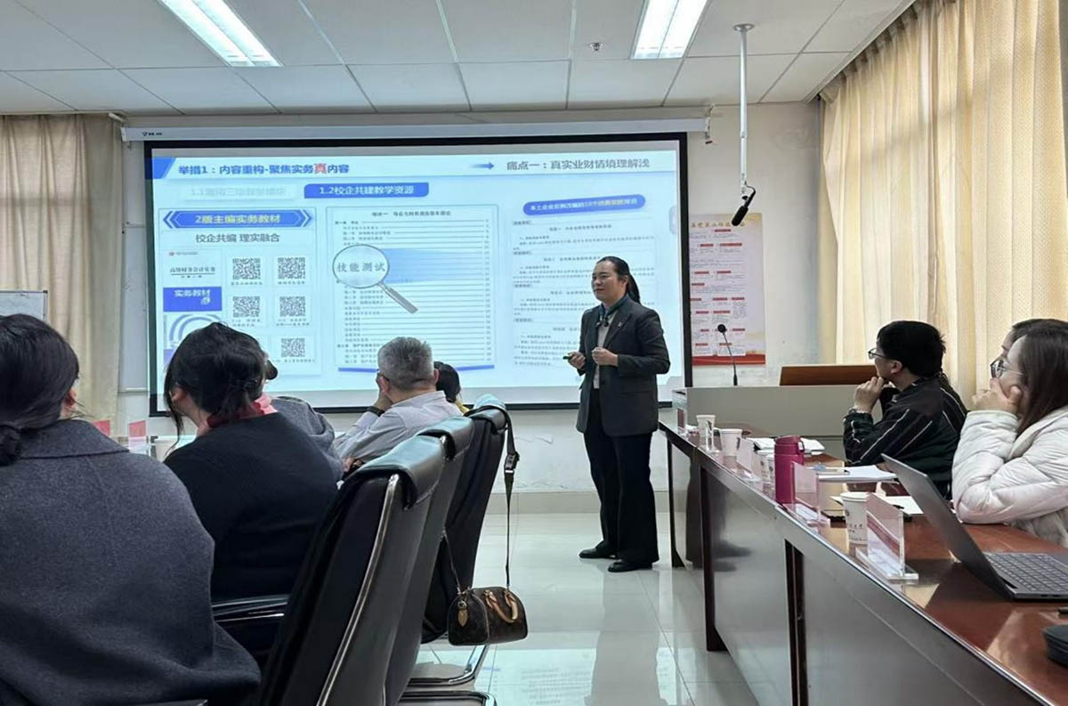 随后,云南工商学院经济与管理学院王媛媛教授以《高级财务会计》课程为切入点,从课程概况、教学痛点、创新举措、教学评价、创新成效五个维度,系统分享了课程教学设计的实践经验。结合第五届全国高校教师教学创新大赛获奖经历,王媛媛教授围绕“明确逻辑主线、读懂政策导向”两大核心,深入拆解了备赛思路与参赛技巧,毫无保留地分享了教学改革与赛事冲刺的宝贵经验,引发在场教师的热烈共鸣。