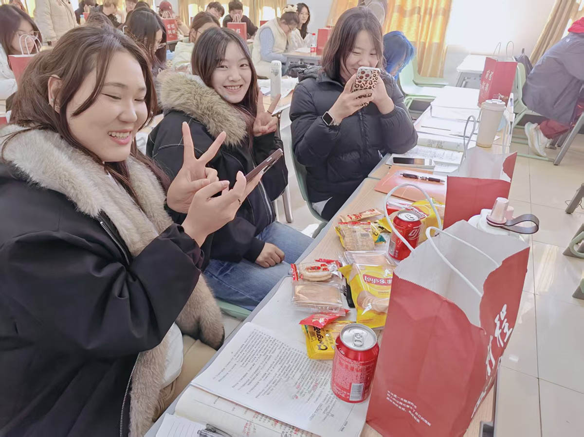 接过这些满载心意的小礼物,同学们的脸上绽放出感动和喜悦的笑容。一位正在备考的同学表示:“没想到学院老师会这么细致地关心我们,还准备了这么有心的礼物。感觉不是一个人在战斗,身后有学院强大的支持。‘旺旺’和‘可乐’一下子就让心情放松了不少,更有动力了。”这份突如其来的关怀,如同冬日里的暖阳,照亮了枯燥的备考生活,也温暖了每一位学子的心田。